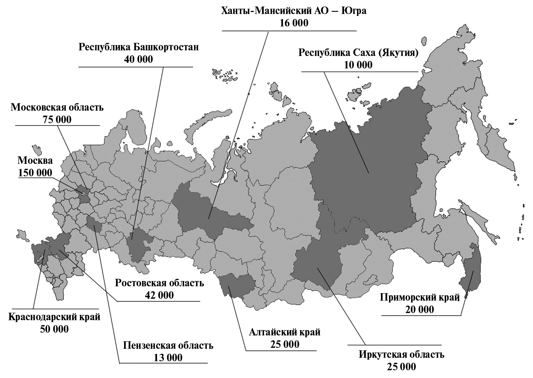 4. Fig. 2. Potential number of patients with PGTT in some regions of the Russian Federation. | |