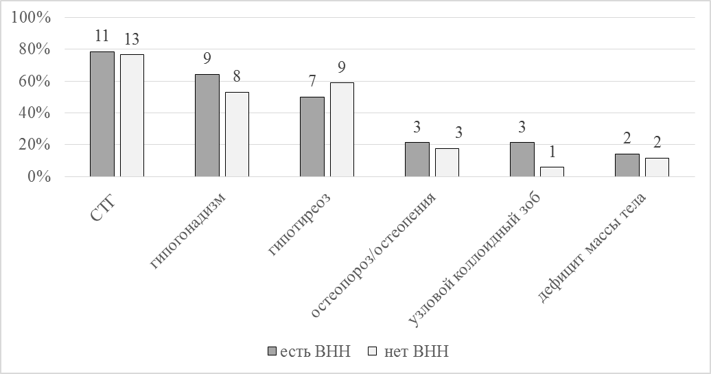 Рис. 3. Структура отдаленных эндокринных последствий в группах с и без ВНН.