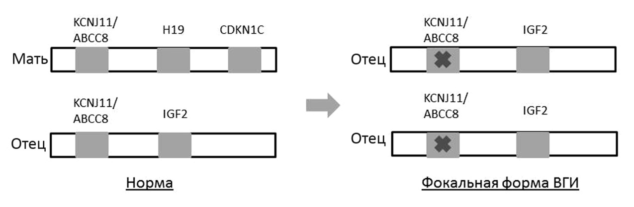 2. Рис. 2. Схематическое изображение генетических механизмов, обусловливающих формирование фокуса гиперинсулинизма.