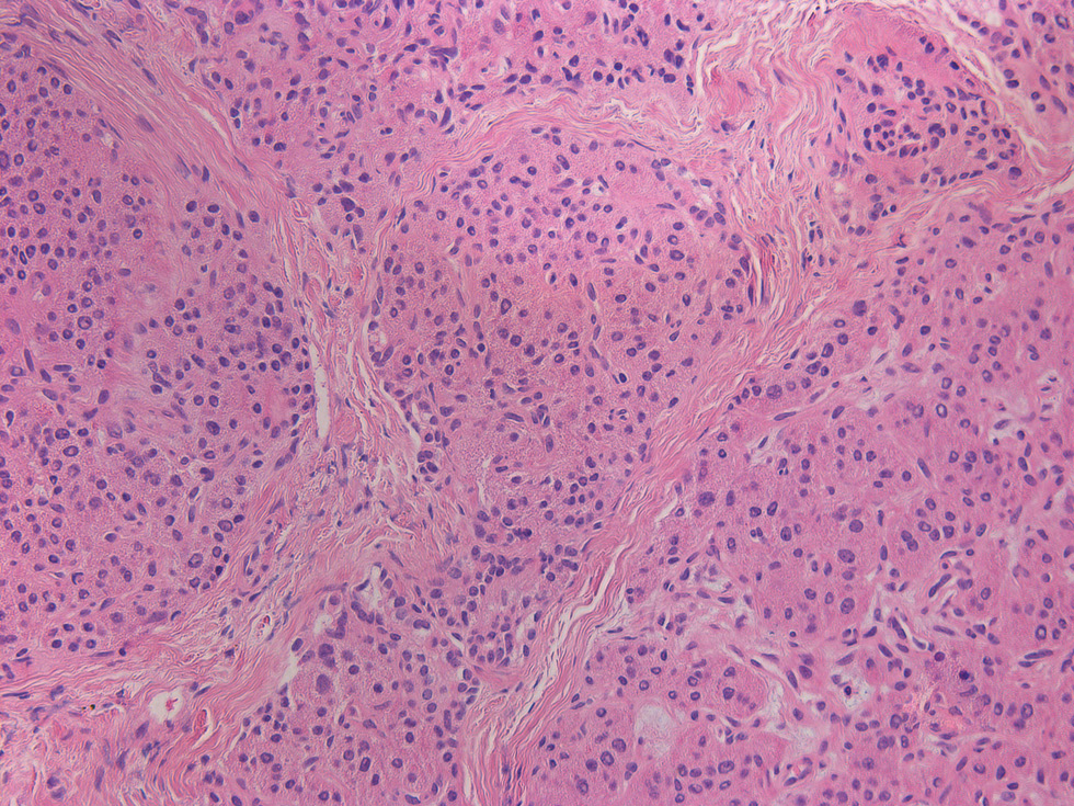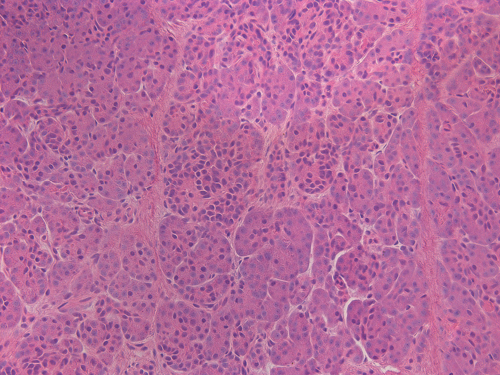 Рис. 4. Гистологическое исследование ткани поджелудочной железы у пациента с фокальной формой ВГИ.