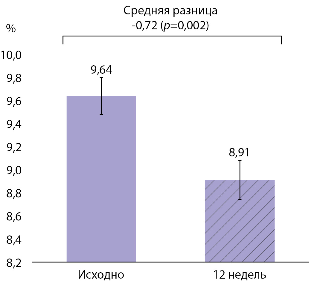 Примечание. Данные представлены в виде доли (%) пациентов с уровнем гликированного гемоглобина <7,5%.