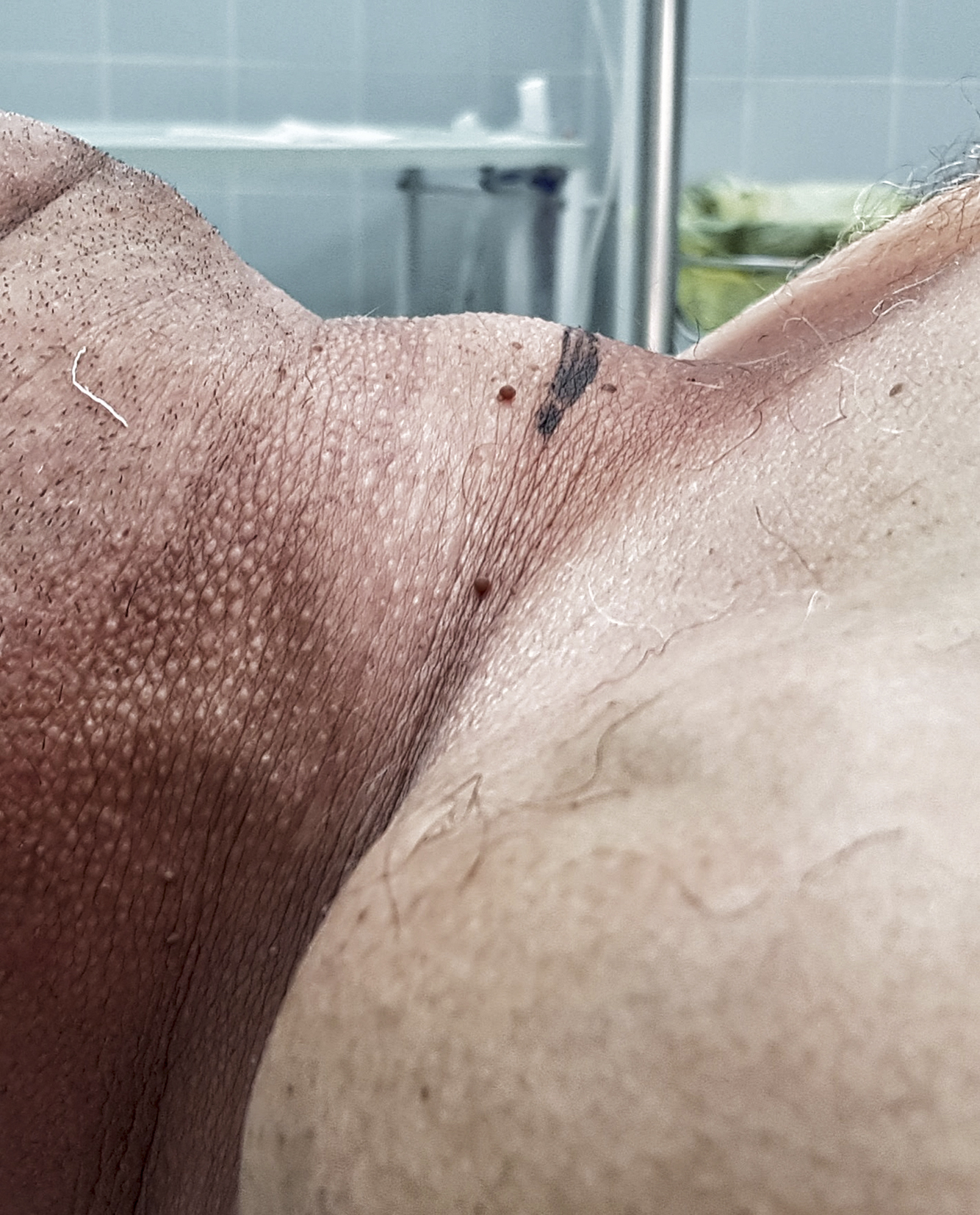 3. Рисунок 2. Фотография шейной области в боковой проекции на операционном столе.