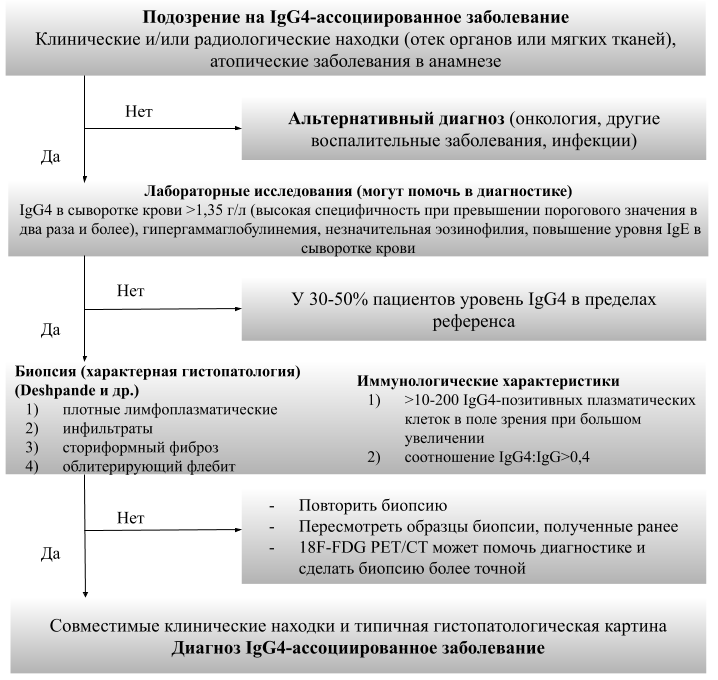3. Рисунок 3. Алгоритм диагностики IgG4-АЗ. Picture 3. Diagnostic algorithm of IgG4-RD. | |