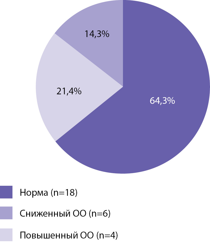 2. Figure 2. Comparative analysis of 2 groups of patients in terms of OO / TM (p = 0.36). OO - basic exchange; TM - lean mass.
