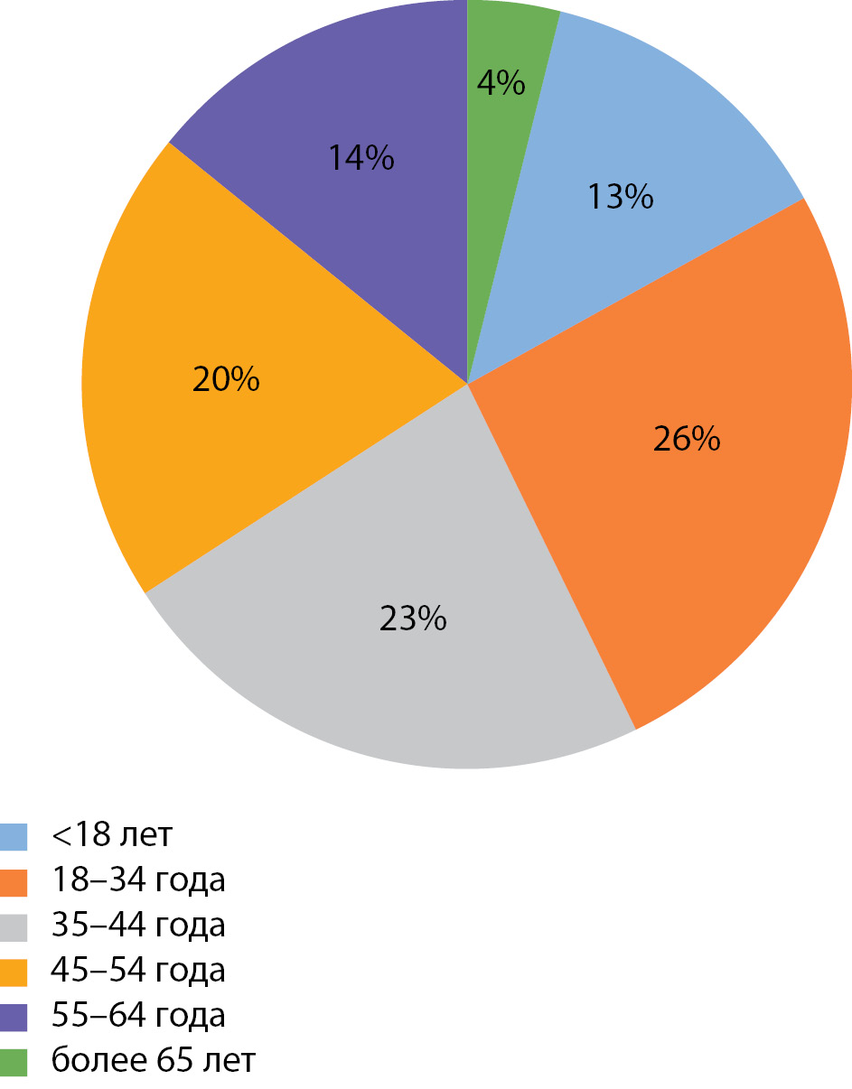 1. Рисунок 1. Распределение пациентов с гипопаратиреозом по возрастам. | |