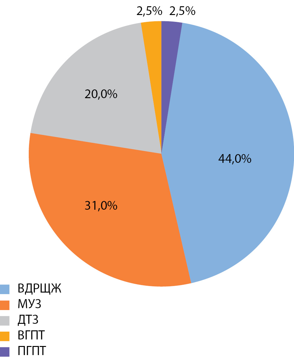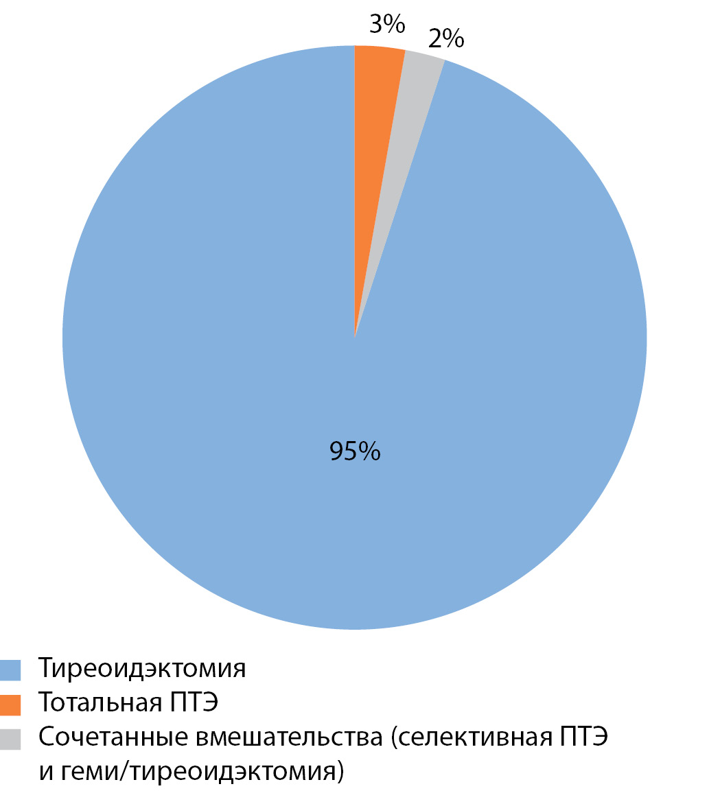 2. Рисунок 2. Спектр заболеваний, хирургическое лечение которых сопровождалось развитием хронического послеоперационного гипопаратиреоза. | |