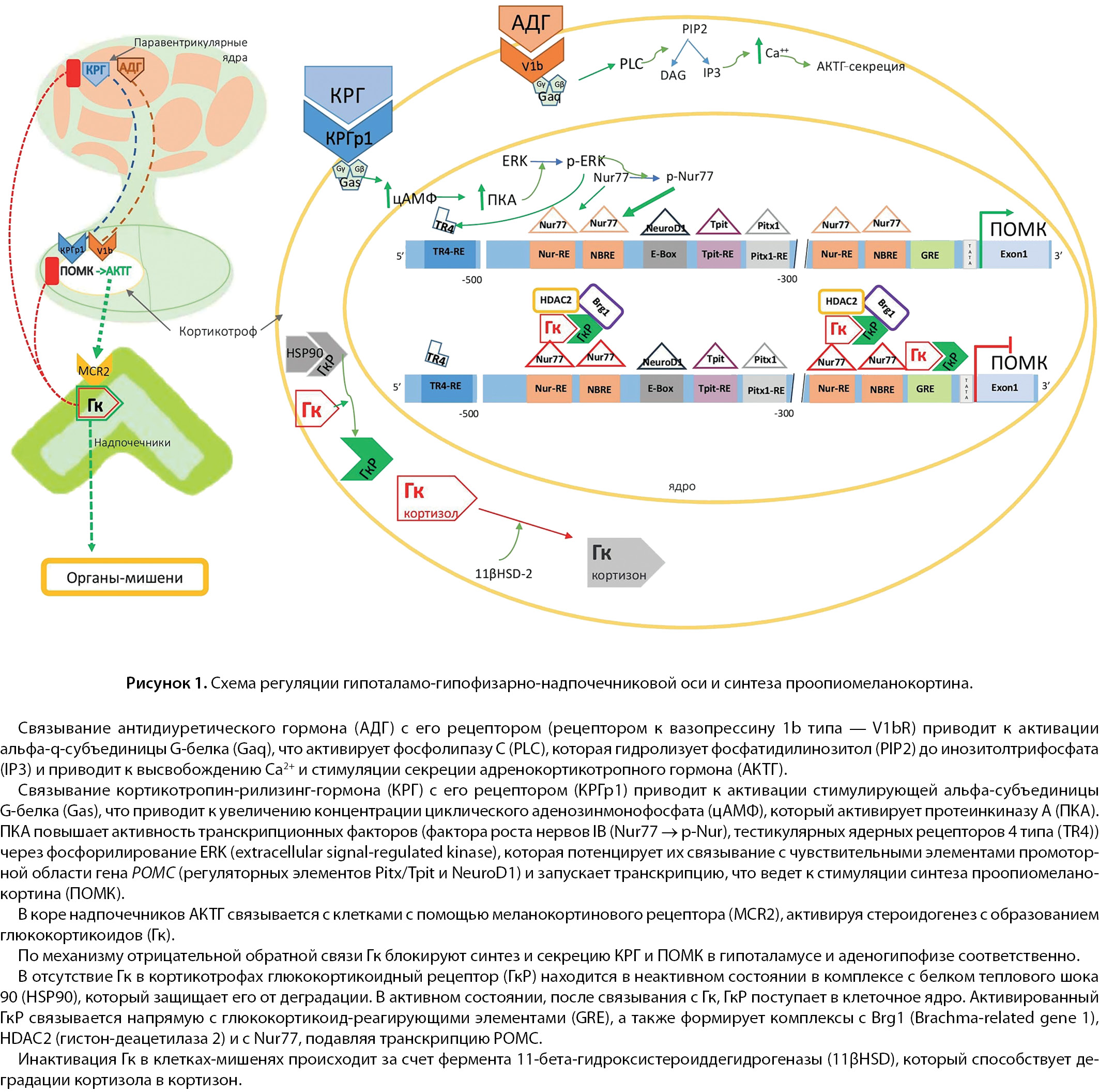 1. Рисунок 1. Схема регуляции гипоталамо-гипофизарно-надпочечниковой оси и синтеза проопиомеланокортина.