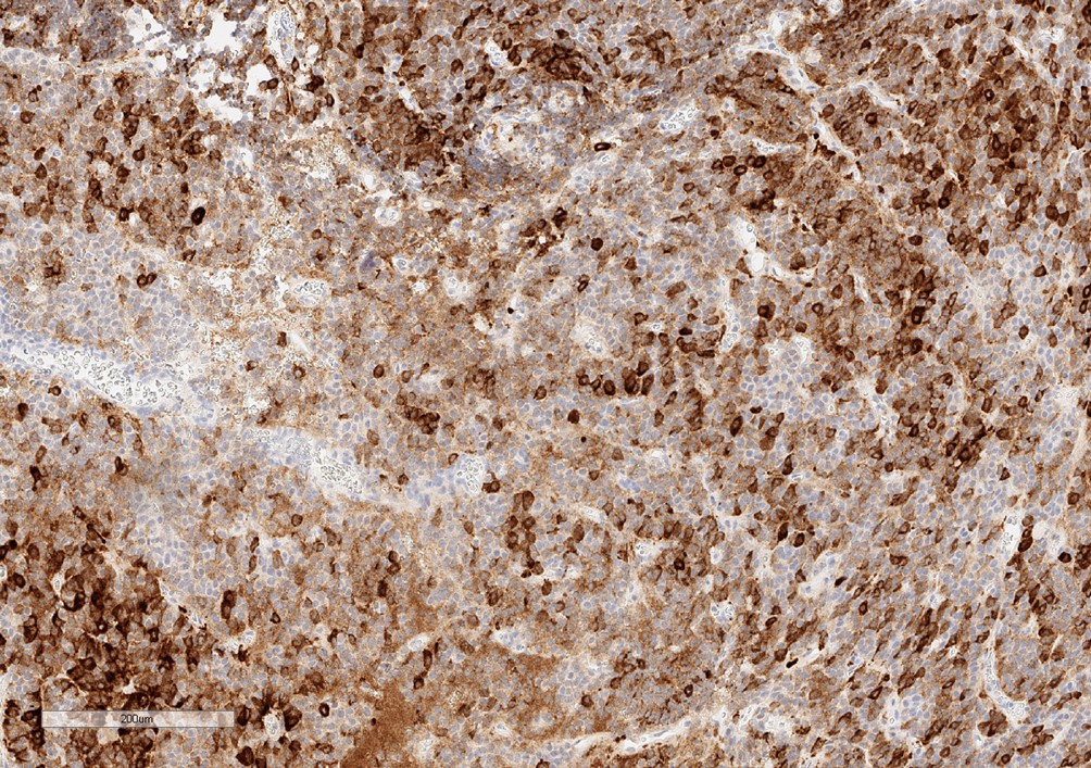 Рисунок 6. Экспрессия SSTR2A опухолевыми клетками. Увеличение х100.