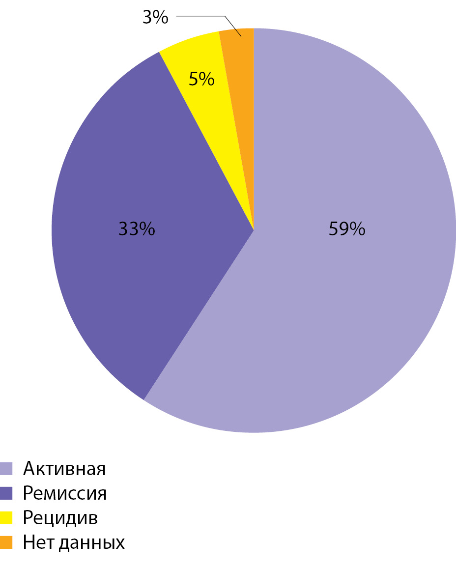 Рисунок 1. Текущее распределение пациентов с ПГПТ по фазе течения заболевания.