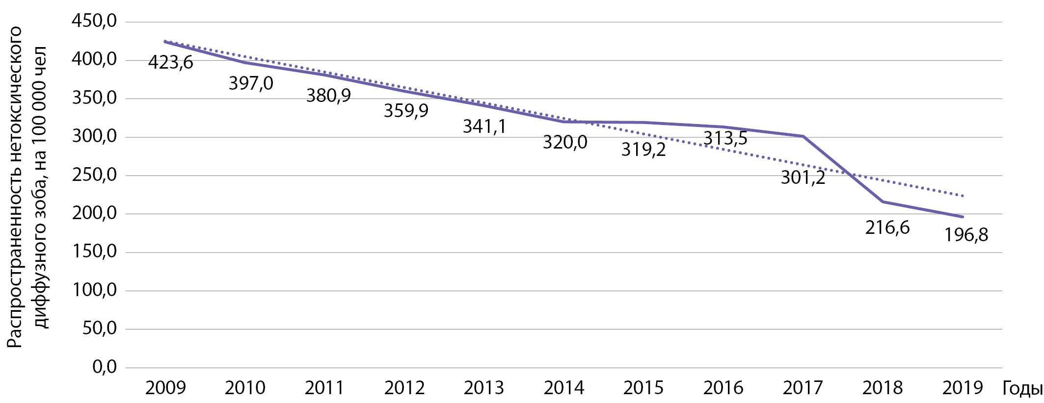 2. Рисунок 2. Динамика распространенности диффузного нетоксического зоба на 100 000 человек.