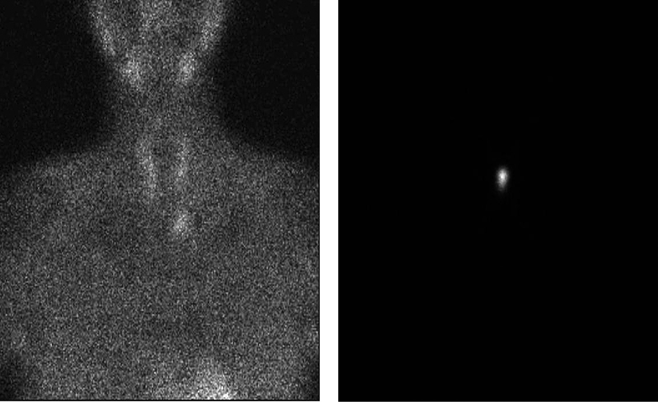 Рисунок 5. Однофотонная эмиссионная компьютерная томография с Технетрилом 99mTc (MIBI), 2021 г.: очаг гиперфиксации РФП в области левой нижней околощитовидной железы.