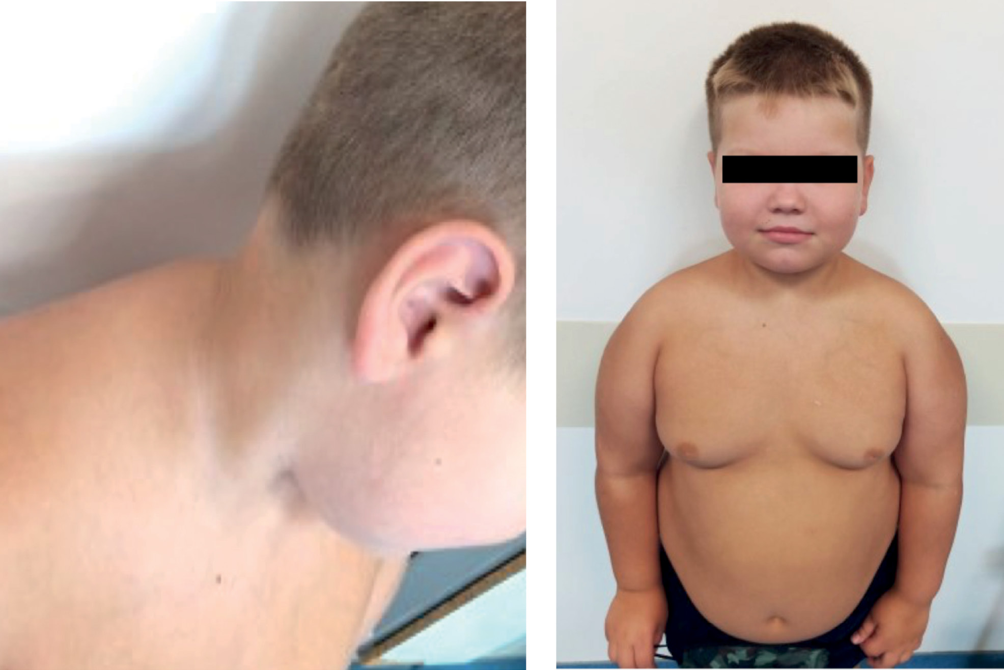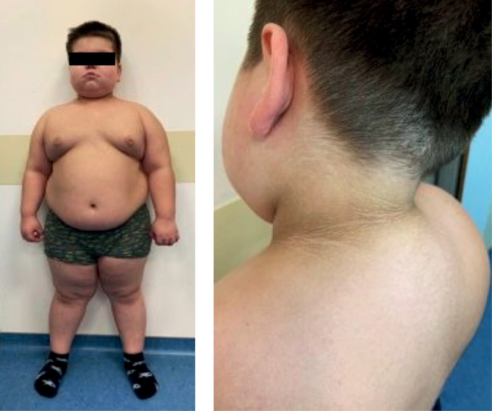 Figure 1. Phenotypic features of a patient at 6.5 years old: redistribution of subcutaneous fat, the presence of a climacteric hump, hyperpigmentation of skin folds.
