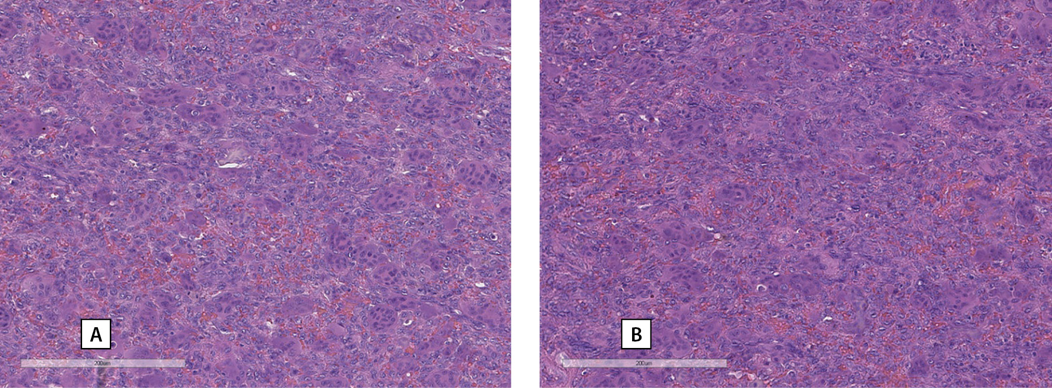 Figure 3. A, B — histological preparations of the formation ("brown" tumor) of the jaw.