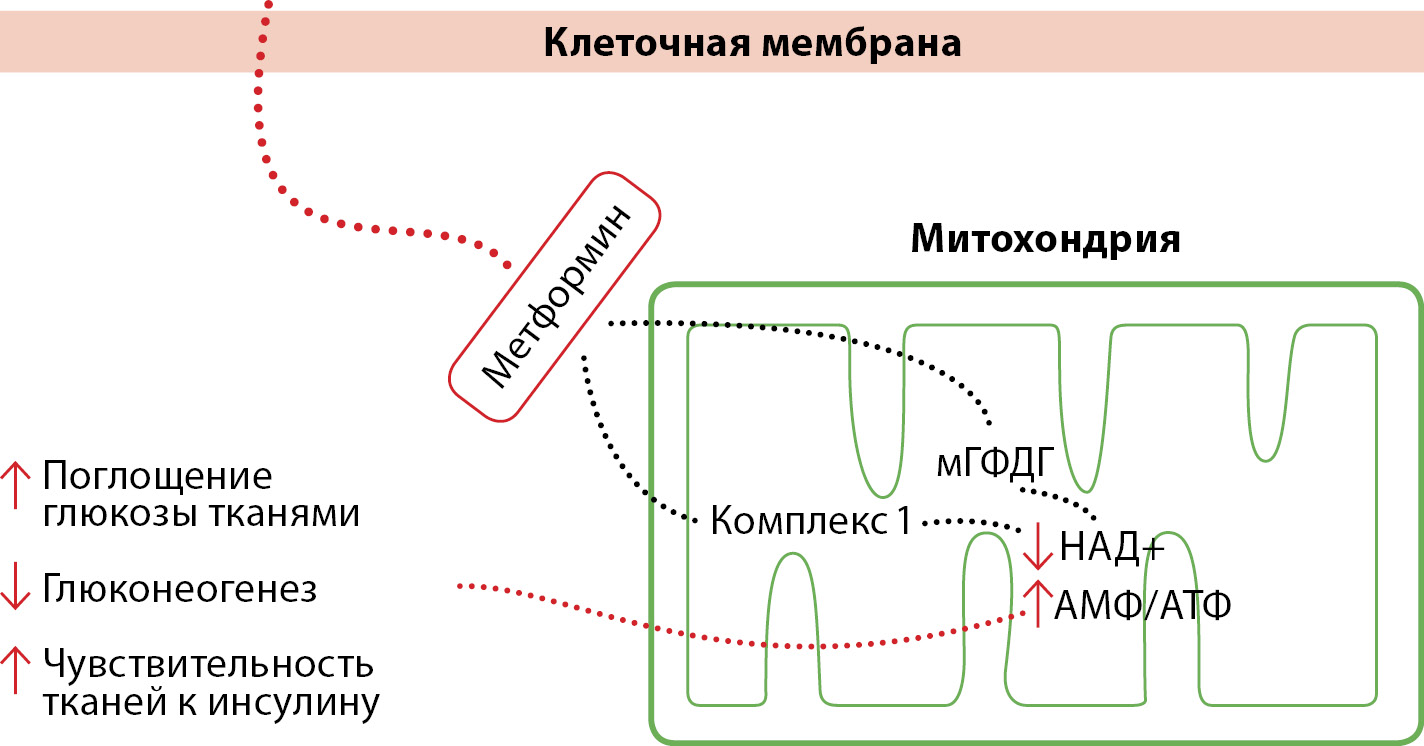 Метформин ингибирует комплекс дыхательной цепи митохондриала 1