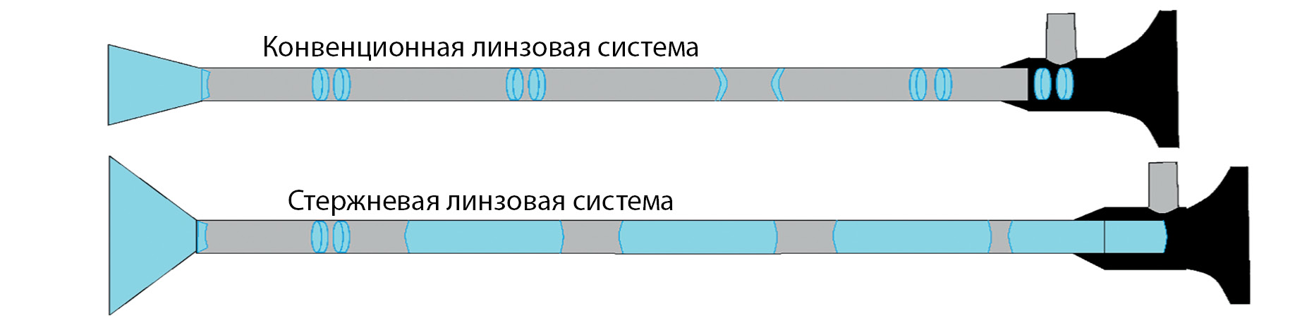 1. Рисунок 1. Эндоскопы с обычной и стержневой линзовой системой.