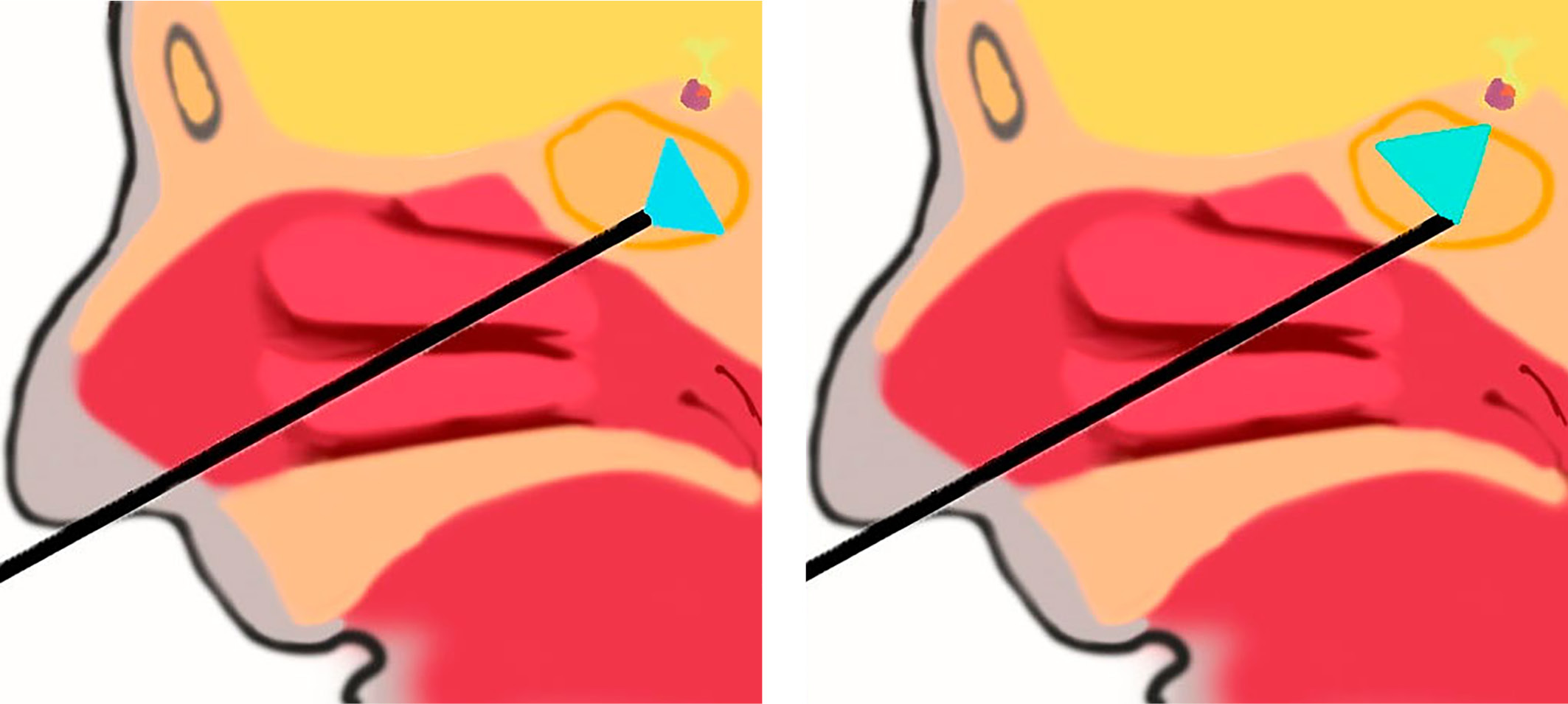 При удалении супраселлярной части опухоли диафрагма может быстро опуститься в полость седла и закрыть фрагменты опухоли по периферии в образовавшихся карманах, особенно в задней части диафрагмы. При такой ситуации рекомендуется регулярно контролировать низведение диафрагмы во время удаления опухолевой ткани и произвести ревизию образовавшихся карманов на наличие остатков опухоли, приподняв купол диафрагмы загнутой ложкой.