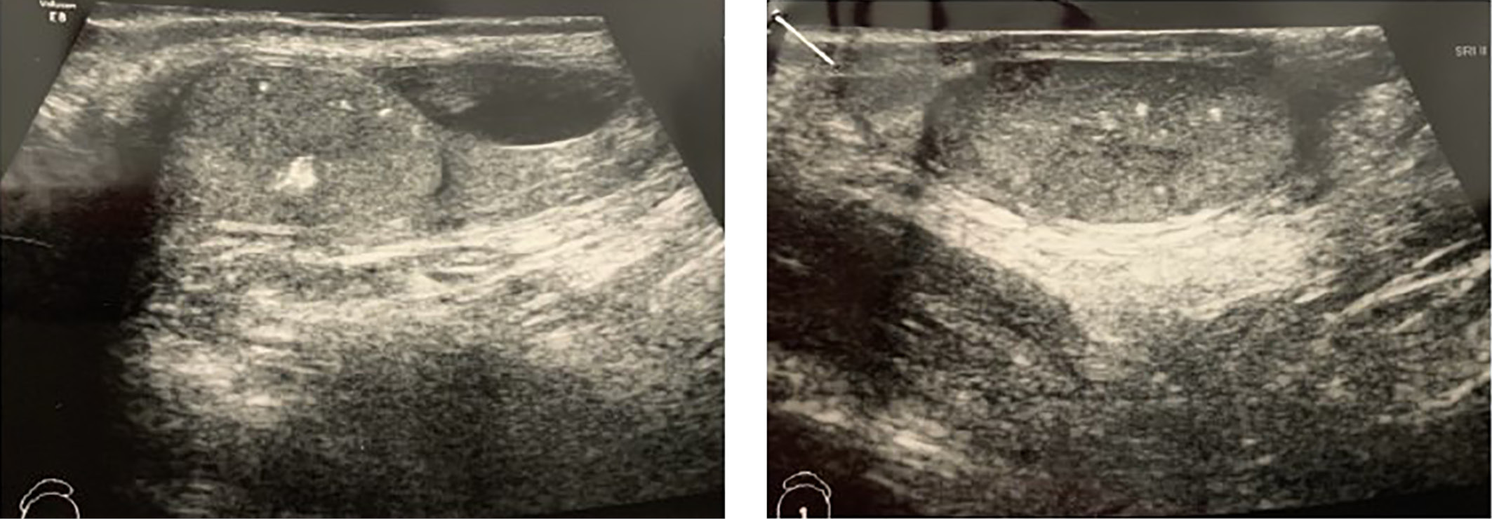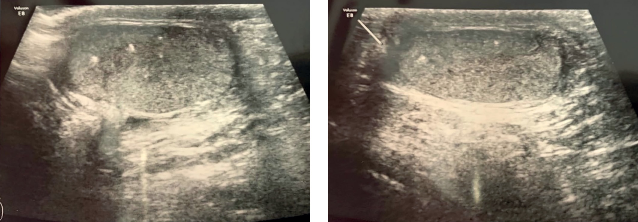 1. Figure 1. Ultrasound of the scrotum of patient S. at the age of 4.7 years. | |