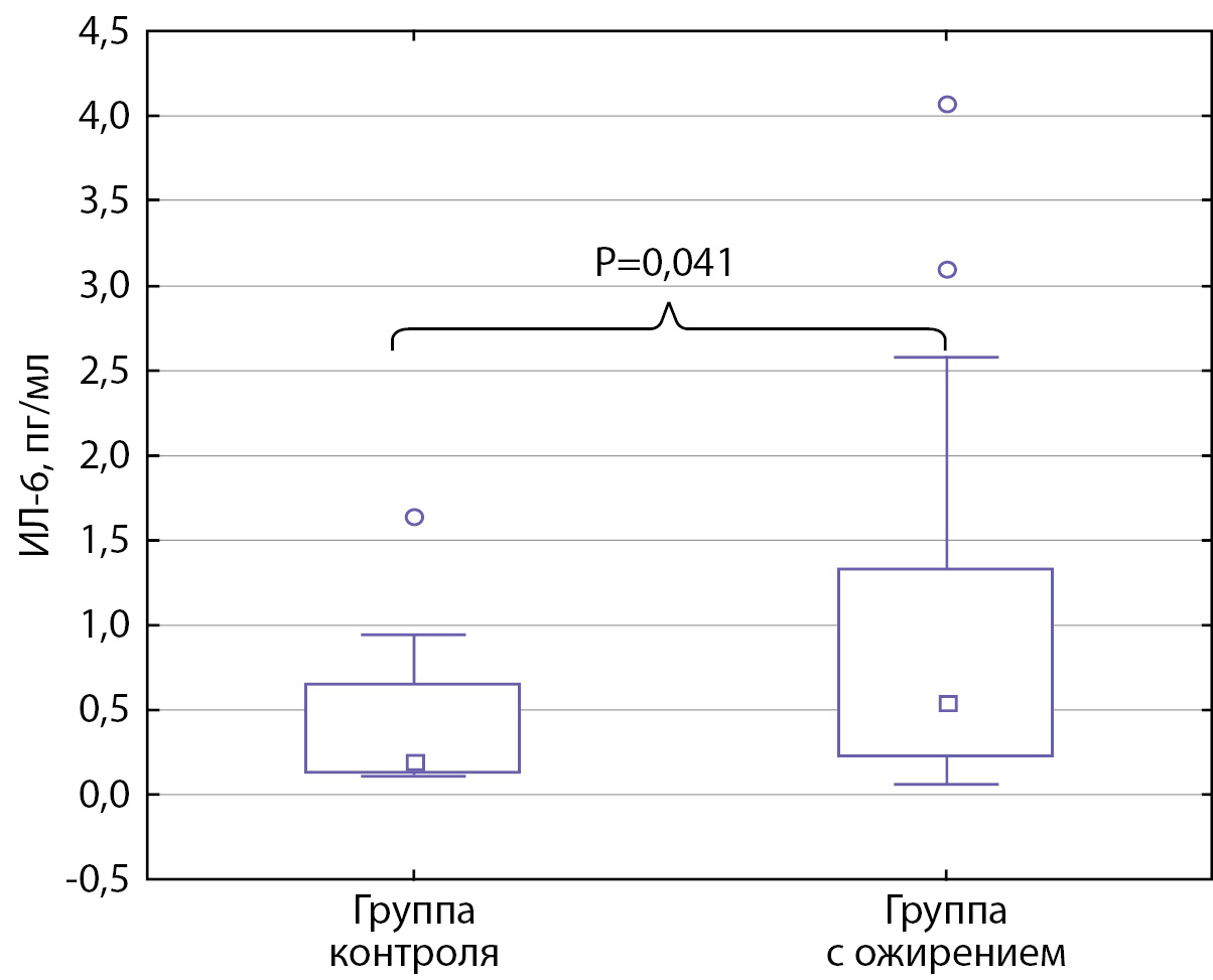 MATERIALS AND METHODS: The study included 80 patients: 60 adolescents aged 15 [13; 16] years with constitutionally exogenous obesity SDS BMI: 3.0 [2.6; 3.3] and 20 control group children aged 16 [15; 17] years without excess weight SDS BMI: -0.3 [-1.25; 0.33]. Commercial enzyme immunoassay kits were used to determine the level of adipomyokines. The compositional composition of the body was evaluated by bioimpedance analysis (InBody 770 analyzer, South Korea) in the morning, on an empty stomach. Statistical processing was carried out using STATISTICA v.12.0 (StatSoft Inc., USA). The results are presented in the form of median (Me) and quartiles (Q1; Q3) corresponding to 25 and 75 percentiles. The critical significance level (p) was assumed to be <0.05.