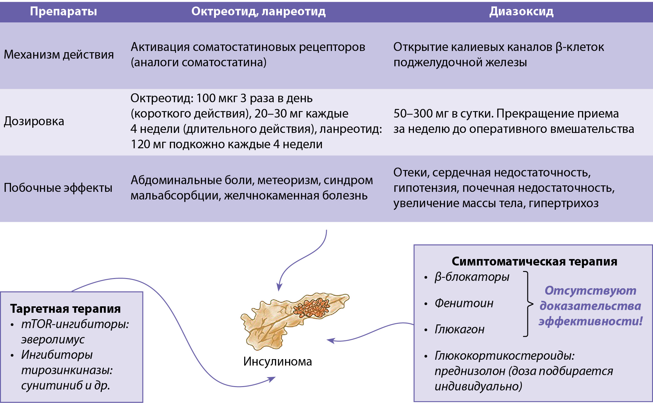 Рисунок 2. Медикаментозные методы лечения инсулиномы.