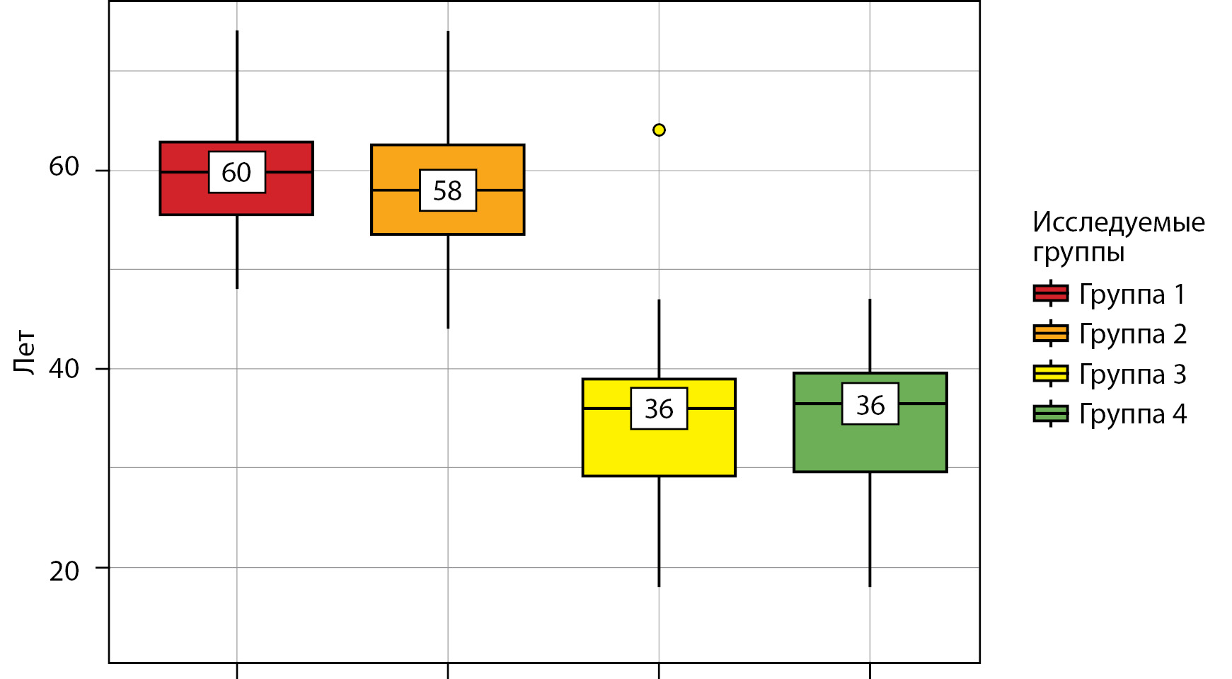 1. Рисунок 1. Анализ возраста в исследуемых группах. | |