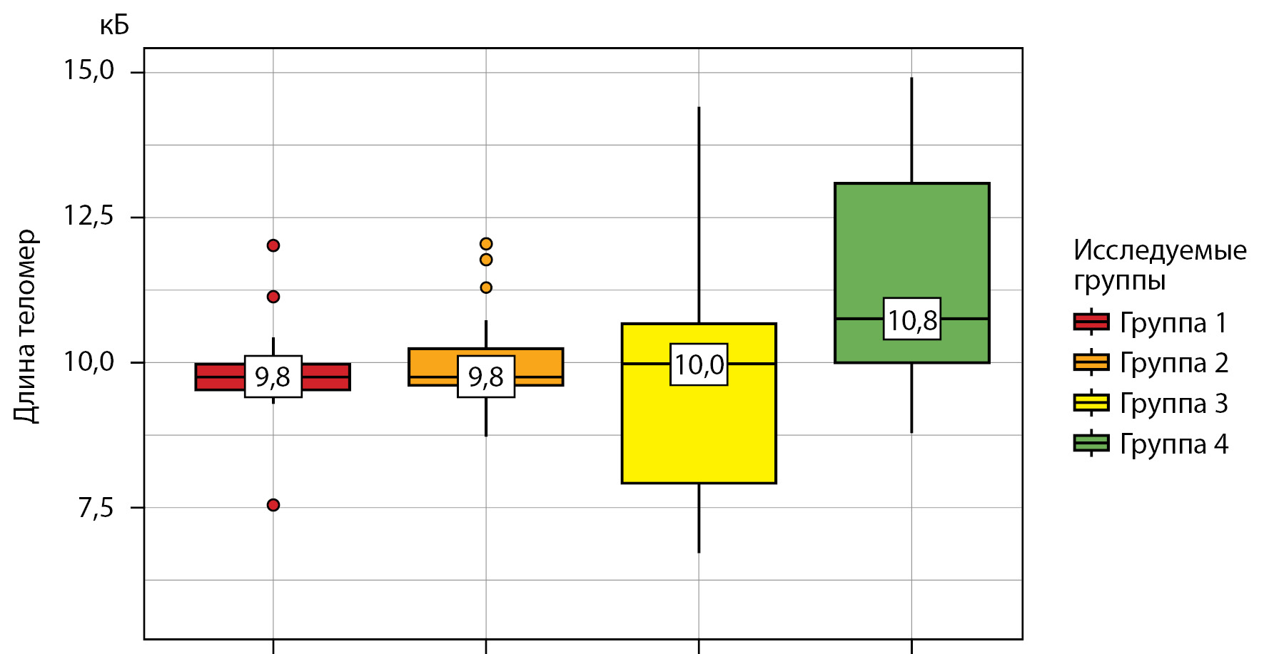 2. Рисунок 2. Распределение длины теломер по группам (кБ) | |