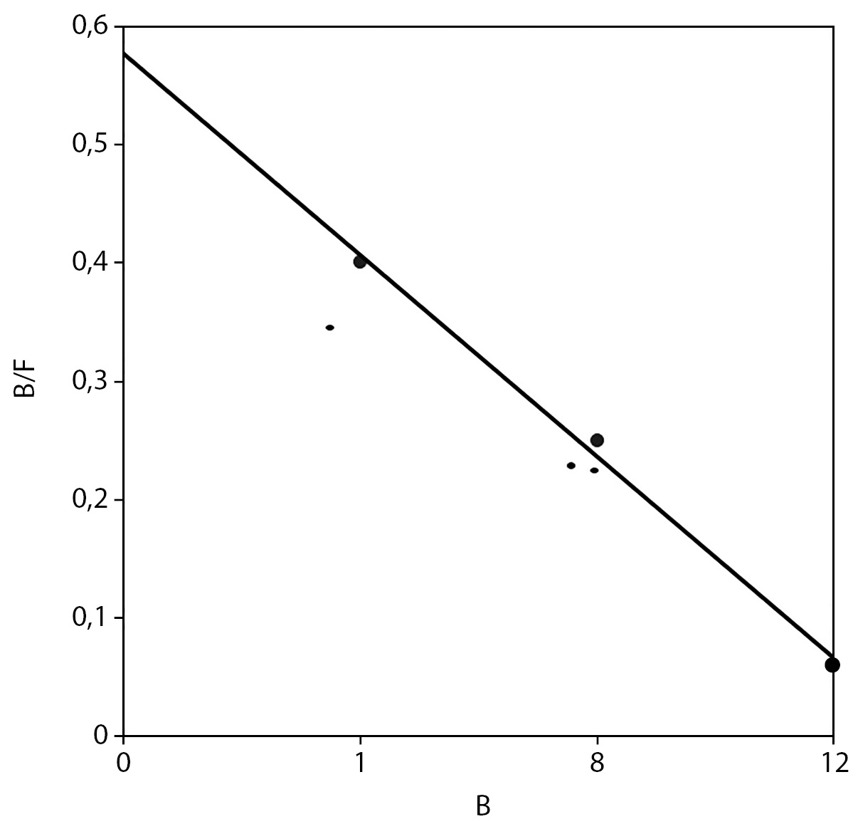 2. Рисунок 2. Соотношение количества связанного 3H-кортизола (B) и количества свободного (F)