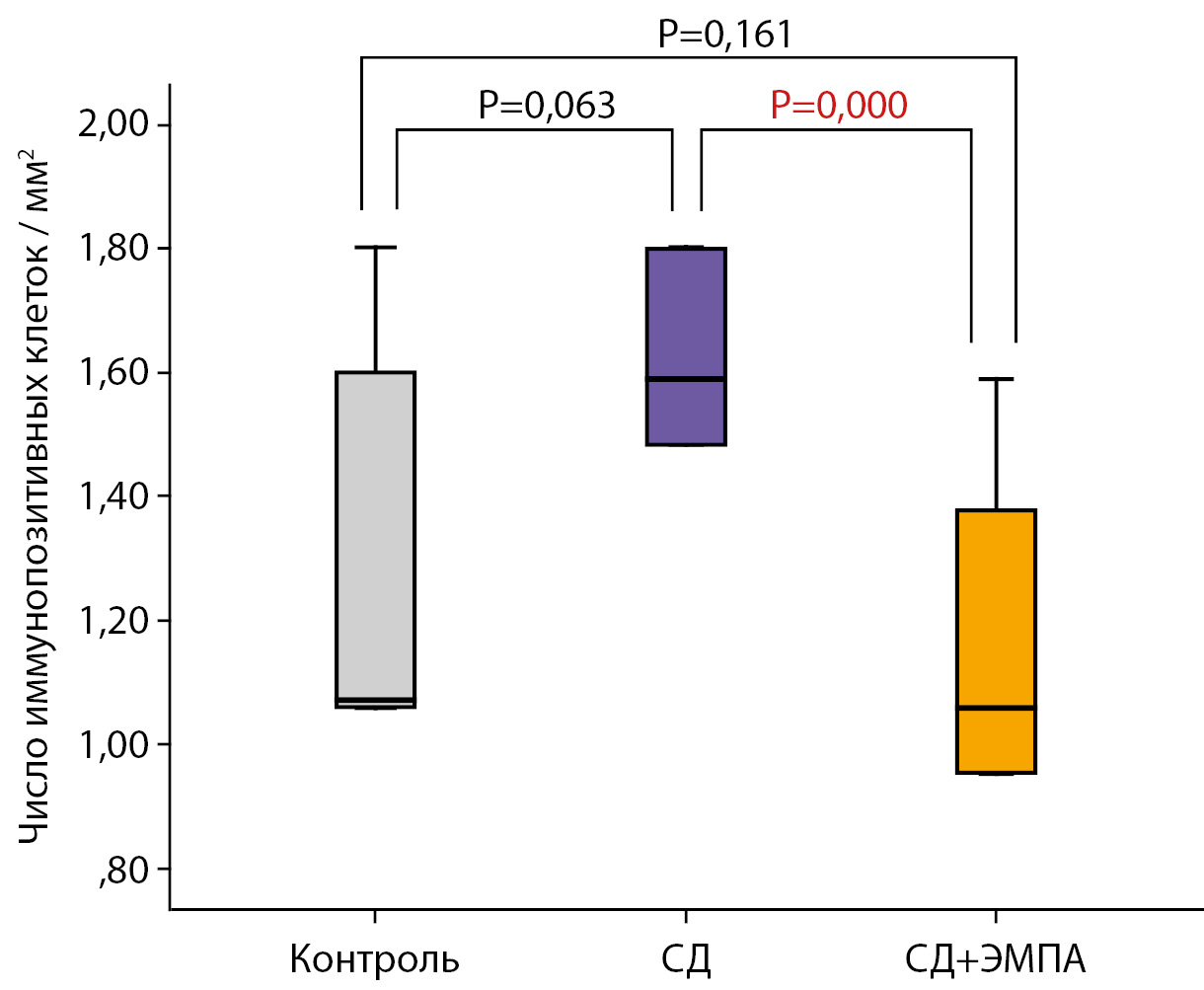 RESULTS: Both in the “MET+EMPA” and the “MET” groups cognitive deficits were observed, according to the Montreal Cognitive Assessment (MOCA) (24.0 (23.0; 27.0) and 25.0 (21.0; 27.0) points) and the Mini-Mental State Examination (MMSE) (23.75 (23.0; 27.0) and 25.0 (21.0; 27.0) points). Empagliflozin therapy led to the cognitive status normalization after 6 months (26.5 (24.0; 27.0) points according to the MOCA scale and 27.5 (24.0; 28.0) points according to the MMSE). Initially, all patients had a significant increase of NSE (3.60 (2.66; 3.76) ng/ml in the “MET” group, 3.22 (2.94; 3.54) ng/ml in the “MET+EMPA» group, 2.72 (2.13; 2.72) ng/ml in the «Control» group) and NLC (4.50 (3.31; 5.56) ng/ml in the «MET» group, 5, 25 (3.75; 6.25) ng/ml in the «MET+EMPA» group comparing with 3.50 (2.25; 3.50) ng/ml in the «Control» group). Empagliflozin therapy led to a significant decrease in NLC already after 3 months (3.80 (3.25; 3.87) ng/ml), without significant influence on the NSE level. In the experiment, DM was characterized by an increased number of activated microgliocytes and destructured neurons and a decreased number of neurons with a normal structure. Empagliflozin therapy was accompanied by a decrease in the number of immunopositive microgliocytes in the CA1 zone of the hippocampus and an increase in the number of structured neurons.