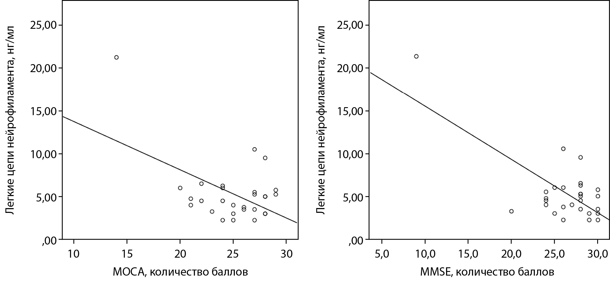 Мы показали, что НСЕ и ЛЦН повышены у пациентов с СД2, при этом их концентрация не коррелирует с длительностью СД, степенью контроля гликемии и другими клинико-лабораторными параметрами, в то же время уровень ЛЦН отрицательно коррелирует с когнитивной функцией, определенной с помощью обеих использованных нами шкал, МОСА и MMSE. Более того, именно концентрация ЛЦН способна претерпевать динамику на фоне лечения, также одновременно с улучшением когнитивного статуса. В этой связи мы полагаем, что уровень ЛЦН может рассматриваться как маркер хронического повреждения ЦНС у пациентов с СД и служить в качестве метода ранней диагностики данного расстройства. Кроме того, этот показатель может обсуждаться в качестве маркера эффективности лечения, а именно реализации плейотропных нейропротективных свойств сахароснижающих препаратов.