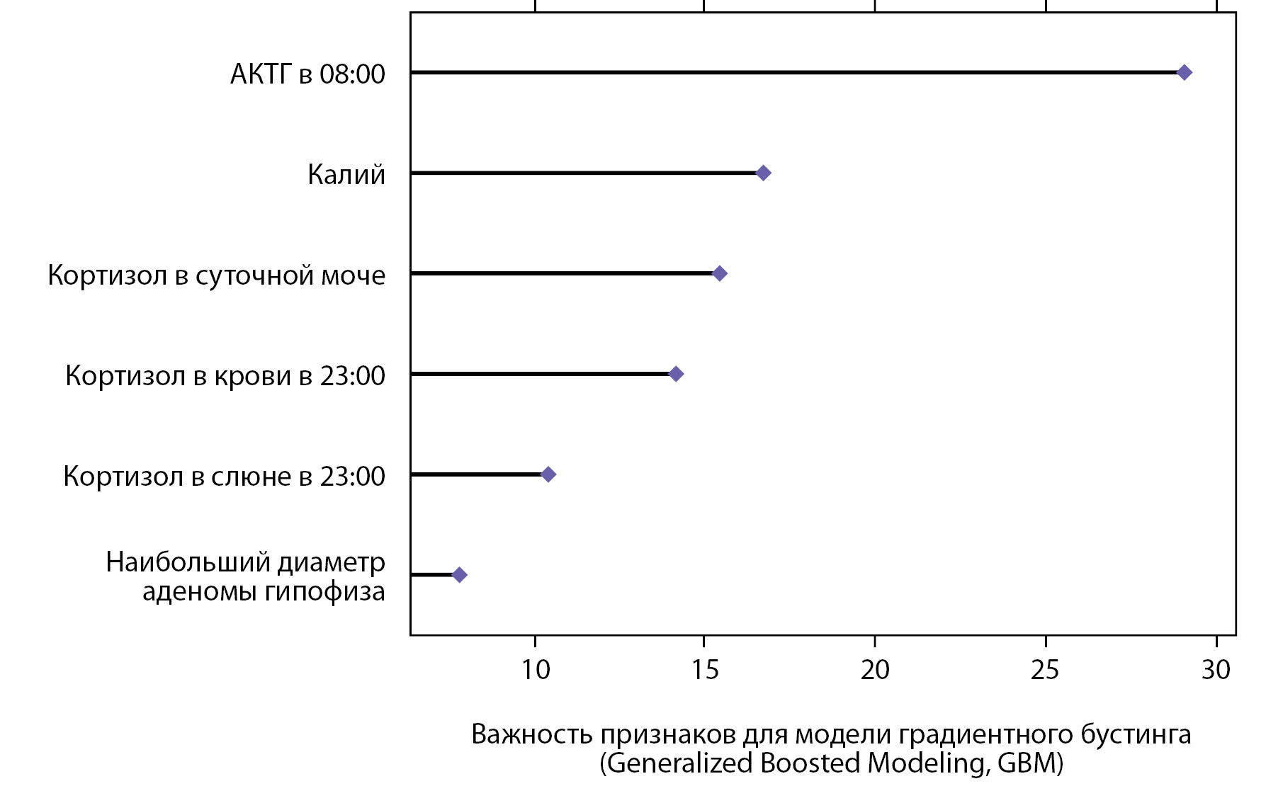 Predictive research in clinical medicine is one of the most promising and rapidly developing areas. Publications in international literature indicate growing interest for the development of predictive models for non-invasive verification of the etiology of endogenous hypercortisolism on the basis of modern machine learning technologies. Currently, active research is being undertaken to improve and increase the models predictive value. For example, machine learning models can effectively predict both early postoperative outcomes in patients with pituitary adenoma, including patients with Cushing disease [11], and long-term remission after removal of pituitary corticotropinoma [12]. However, the smallest amount of research in this area is devoted to differential diagnosis of various forms of hypercortisolism.