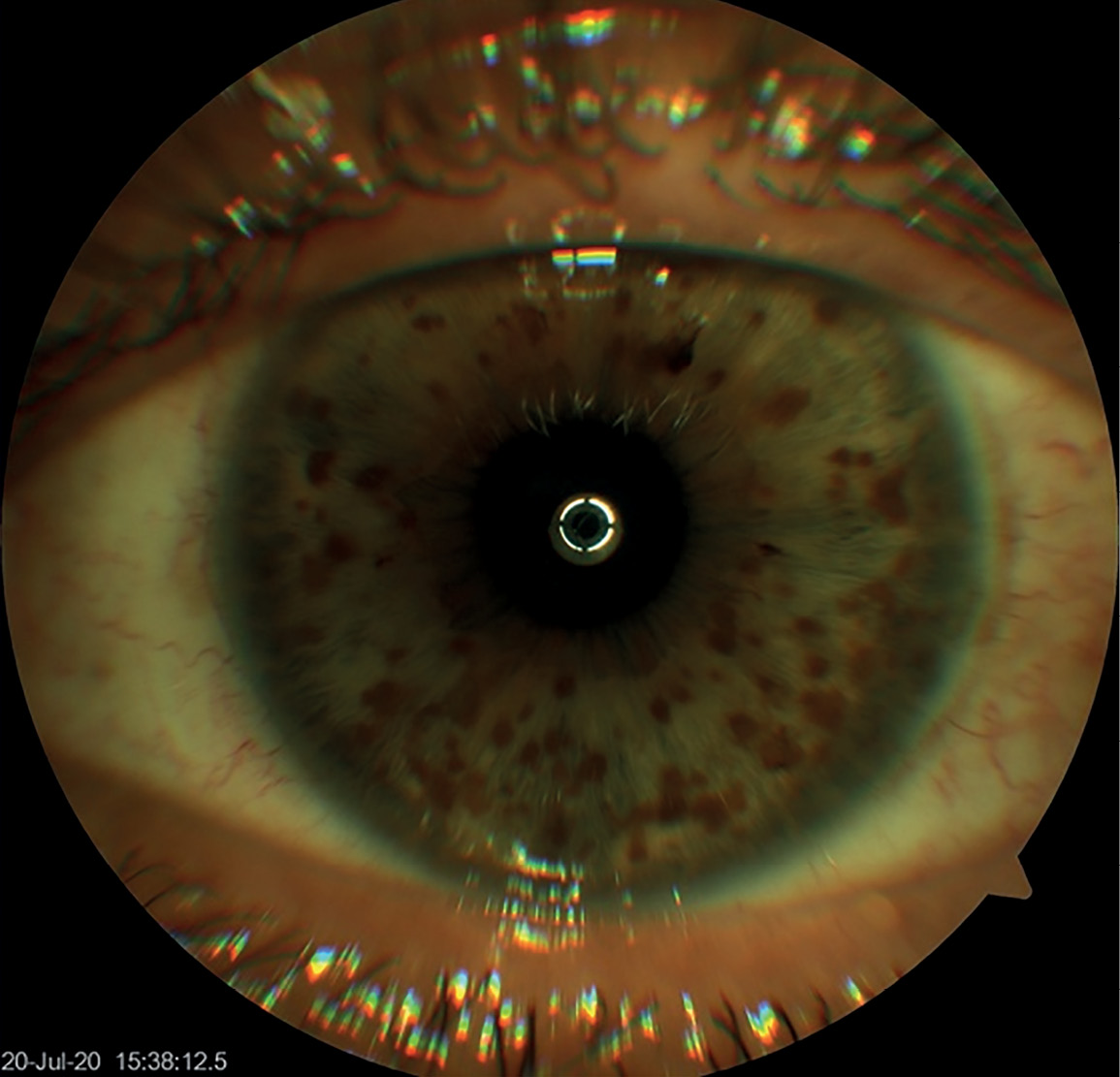 Figure 4. Multiple Lisch nodules on the cornea of the eye
