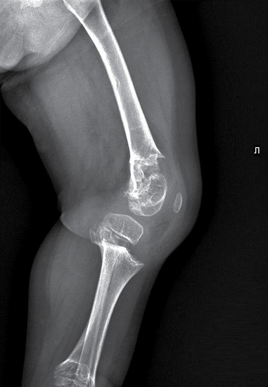 Рисунок 2. Рентгенография правого коленного сустава в боковой проекции.