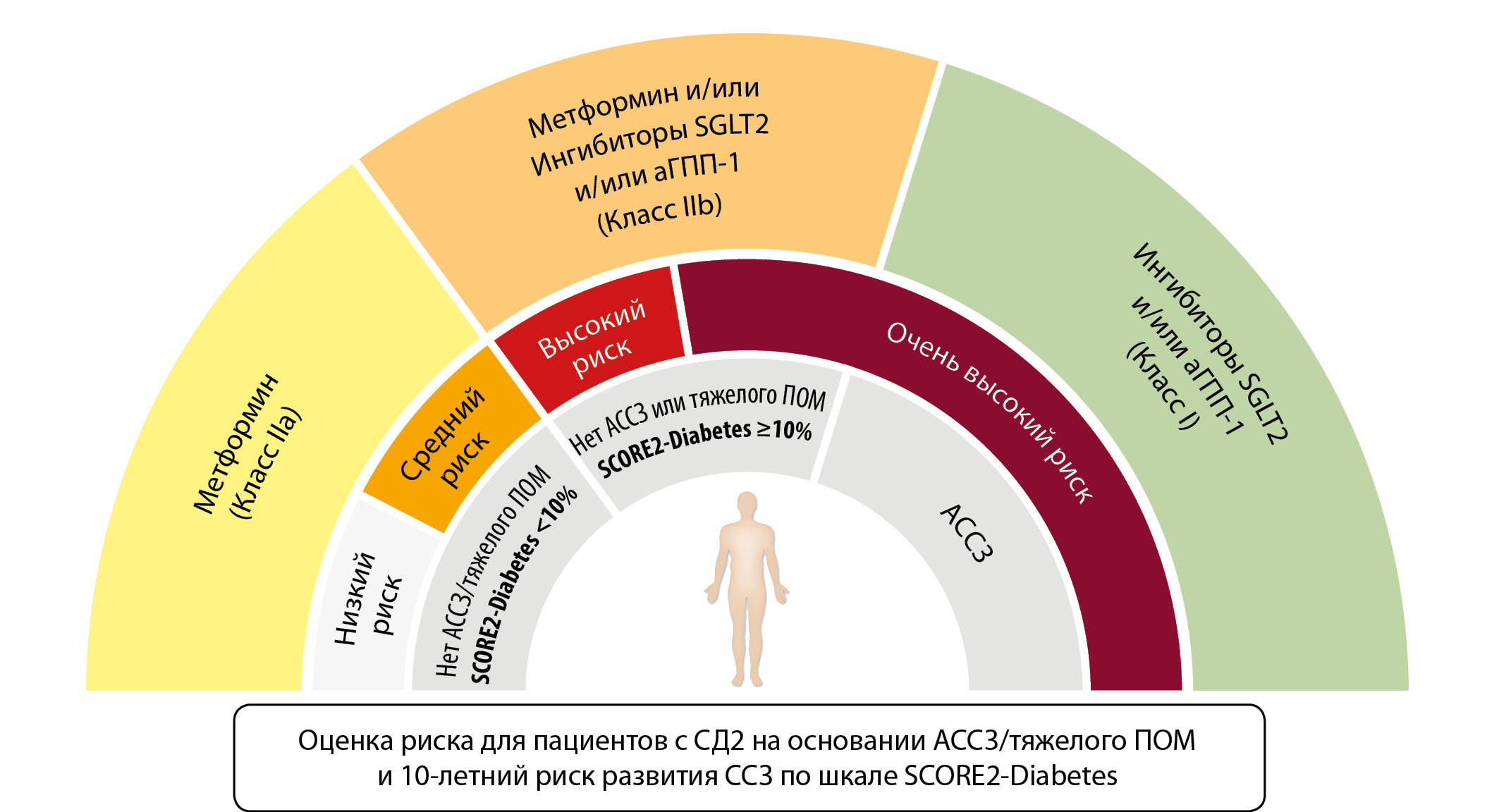 Опираясь на накопившиеся данные рандомизированных исследований, эксперты ЕКО утверждают, что выбор гипогликемической терапии должен быть в первую очередь основан на преимуществах в предотвращении ССЗ, которые это лечение принесет. Поэтому назначение ингибитора SGLT2 или агониста ГПП-1 для пациентов с СД должно быть также обязательно, как и, например, назначение статина или ингибитора АПФ/блокатора АТ-рецепторов. Для пациентов с СД и имеющимся АССЗ назначение этих препаратов отнесено к классу I (рис. 2).