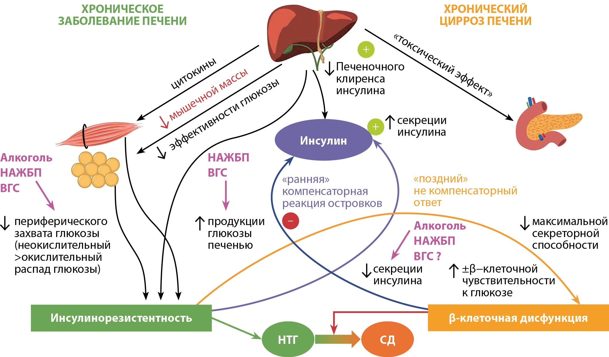 Рисунок 2. Расширенная схема патогенеза гепатогенного сахарного диабета.