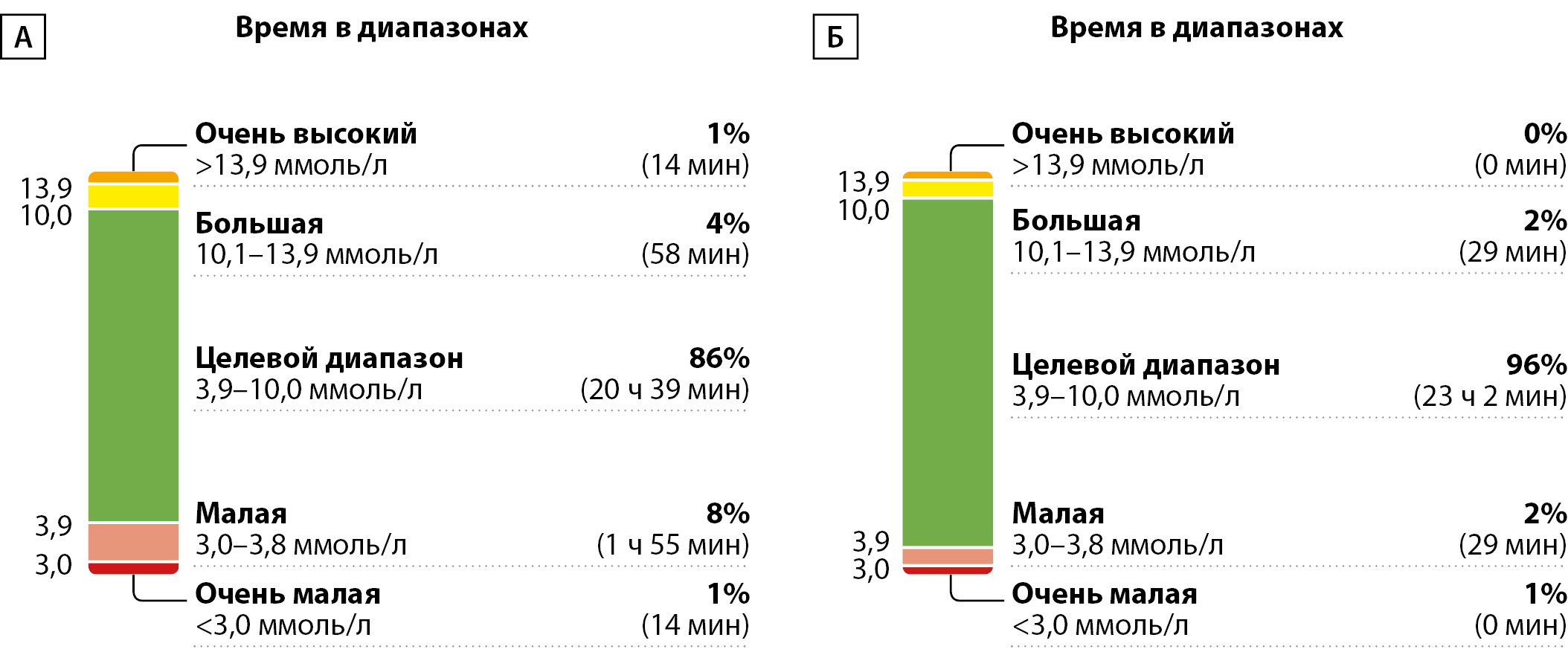 -время нахождения в целевом диапазоне (3,9–10,0 ммоль/л);