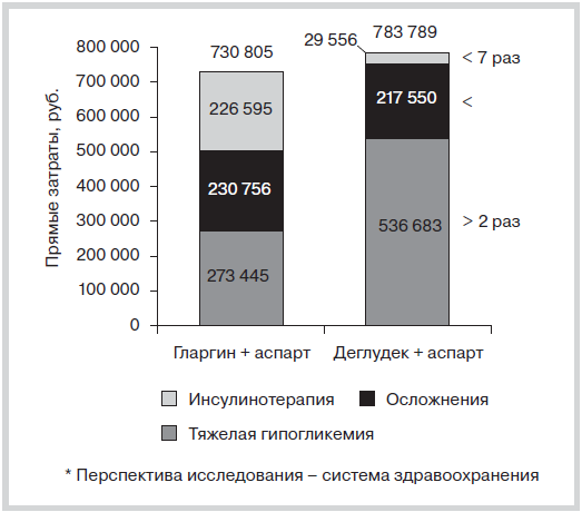 Сравнительная фармакоэкономическая оценка лечения сахарного диабета 2-го типа инсулинами деглудек и гларгин в составе базис-болюсной инсулинотерапии