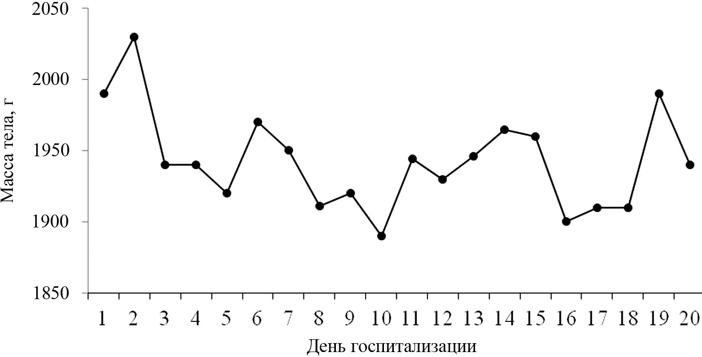 3. Рис. 3. Динамика массы тела за период обследования в клинике.