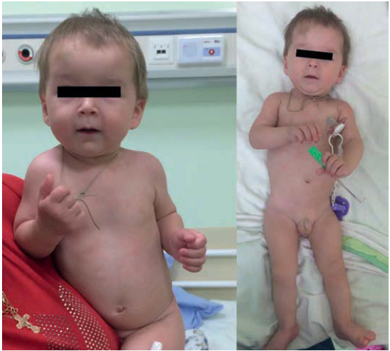 4. Рис. 4. Пациент в возрасте 1 года, через 8 месяцев после операции. Рост 63,7 см. SDS роста –3,62. Масса тела 6,8 кг. SDS ИМТ –2,14.