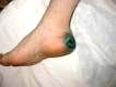 Через 6 мес после возвращения из Санкт-Петербурга пациент госпитализирован в эндокринологическое отделение Ставрополя в связи с ухудшением состояния на фоне нестабильных показателей глюкозы крови. Диагностирована внебольничная пневмония в верхней доле правого легкого; проводилась антибактериальная терапия (амоксициллин, цефтриаксон), отхаркивающая терапия (амброксол, ингаляции с беродуалом). Пациентом в отделении был получен контактный термический ожог передней брюшной стенки (ребенок прислонился к отопительной батарее). Причиной ожога, возможно, является диабетическая полинейропатия, значительное утончение кожных покровов в области живота и высокий болевой порог.