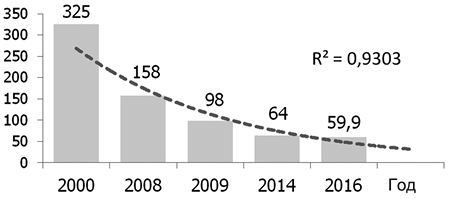 2. Рис. 2. Доля продаж йодированной соли в Республике Беларусь в 2001—2016 гг. | |