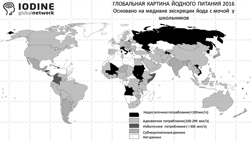 В Республике Беларусь разработана и внедрена стратегия ликвидации йодного дефицита среди населения, основанная на признании рекомендаций о том, что йодированная соль является универсальным источником обеспечения организма йодом. К настоящему времени достигнуто адекватное потребление йода в питании и существенно снизилась распространенность заболеваний щитовидной железы, обусловленных дефицитом йода. В 2013 г. Международным советом по контролю йододефицитных заболеваний (ICCIDD) — глобальной некоммерческой, неправительственной организацией, созданной для устранения дефицита йода и последствий его негативного влияния на здоровье, опубликованы результаты оценки йодной обеспеченности в мире, согласно которым в Республике Беларусь обеспечивается адекватное потребление йода. Глобальная сеть по йоду (Iodine Global Network) в 2016 г. опубликовала карты, характеризующие йодную обеспеченность для двух основных оценочных категорий — детей школьного возраста и беременных женщин, на которых подтверждается статус Республики Беларусь как страны с адекватной йодной обеспеченностью по результатам субнациональных исследований. Несмотря на достигнутые успехи, возникают новые требующие решения вопросы. С позиций медицинского мониторинга, эти вопросы включают качество исследований по мониторингу йодной обеспеченности, риски избыточного потребления соли, необходимость унифицированных подходов к диагностике патологии щитовидной железы, обусловленной дефицитом йода.
