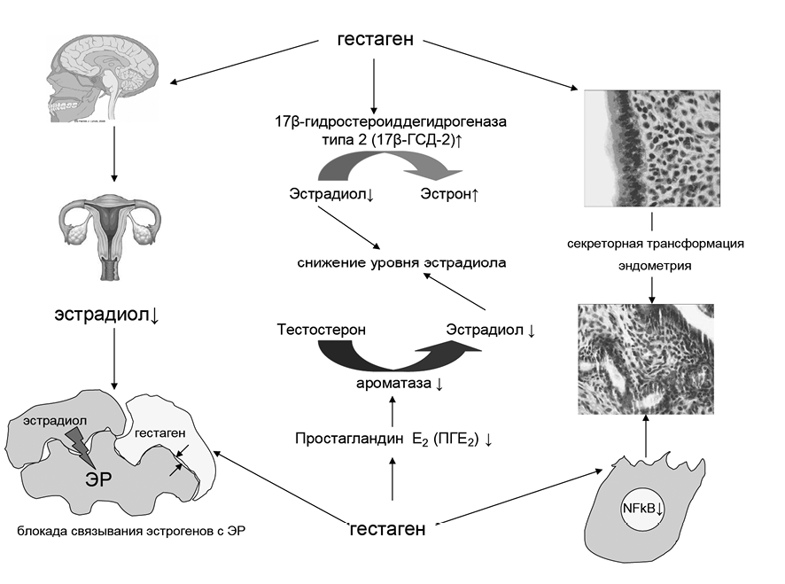 Рис. 2. Участие гестагенов в патогенезе эндометриоза.