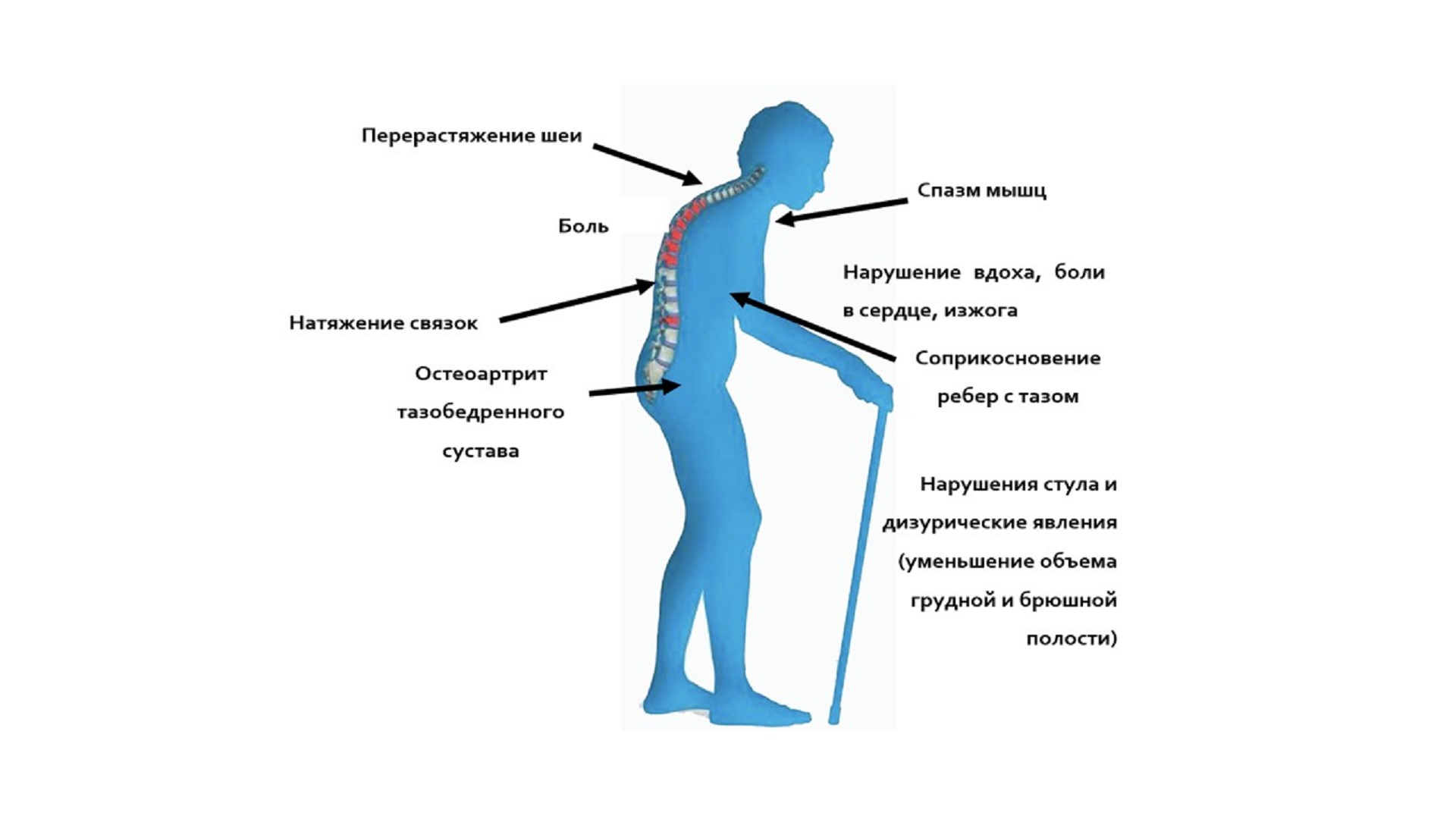 1. Рисунок 1. Клинические проявления множественных компрессионных деформаций тел позвонков | |