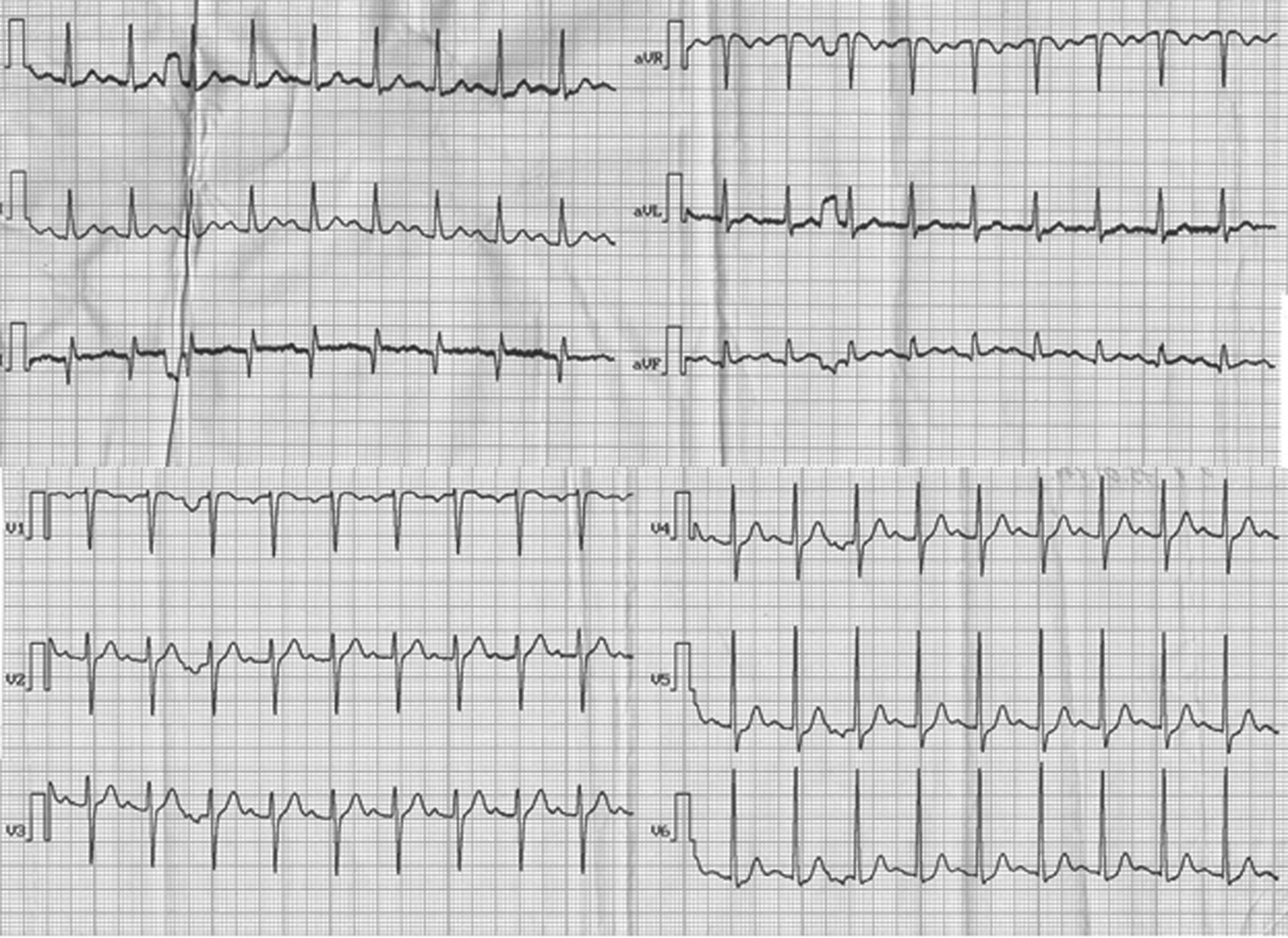 Рис. 1. Результаты ЭКГ пациентки Н., проведенной службой скорой медицинской помощи.