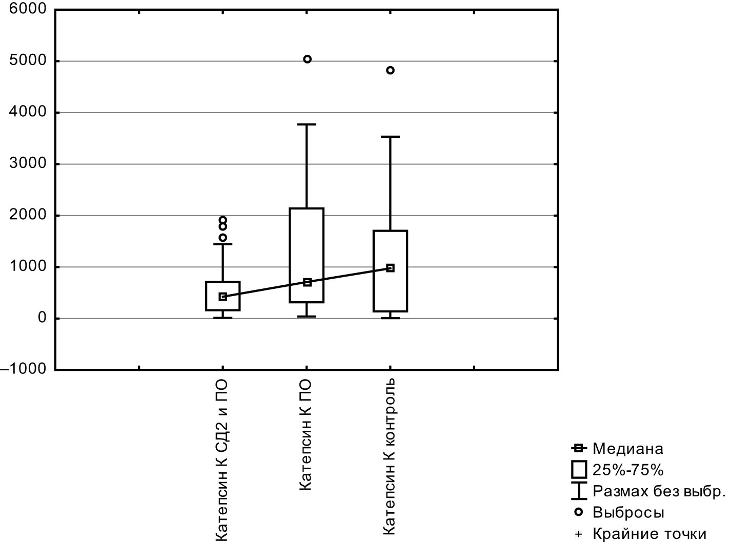 RESULTS: No statistically significant differences have been observed between groups in sclerostin levels, a positive correlation was found between sclerostin and НbА (r=0.43; p=0.009) in the group of patients with T2DM and PO, a negative correlation was found between sclerostin and ionized calcium (r=–0.45; p=0.037) in the group of patients with PO. Cathepsin C in the first group was lower than in the second group (p=0.046), but taking into account Bonferroni correction this difference was not statistically significant. In the first and third groups, 25 (OH) vitamin D was lower than in the groups without T2D. The ALP negatively correlated with the duration of the postmenopause (r=–0.39 and r=–0.64; р=0.05, respectively).